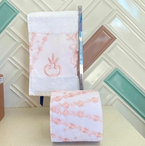 Conjunto Toalha barra e capa de papel higiênico Rosa Bebê
