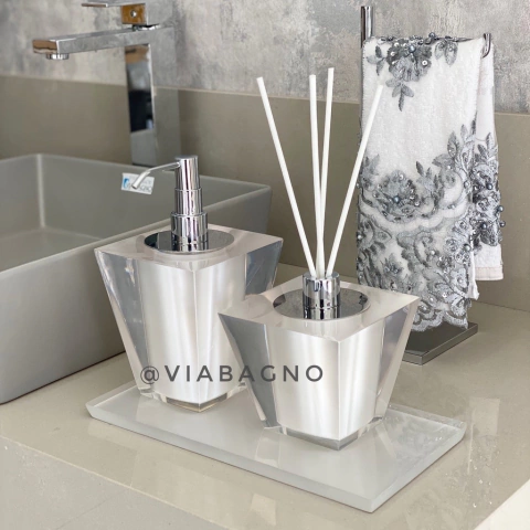 Kit lavabo 2 peças + Bandeja 14x28 em resina Torre Cristal Pérola com Cromado