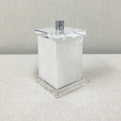 Porta cotonete/ algodão perolado com cromado tampa transparente